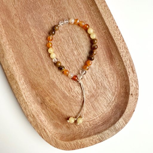 A Lélekláncon négy ásvány – kalcit, hegyikristály, karneol és tigrisszem – találkozik,