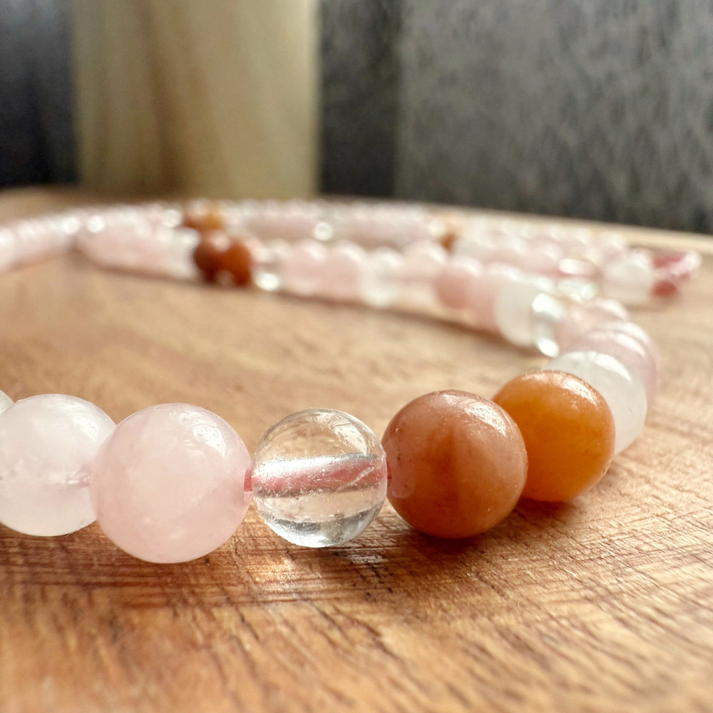 - barack aventurin, rózsakvarc, fehér jade, hegyi kristály