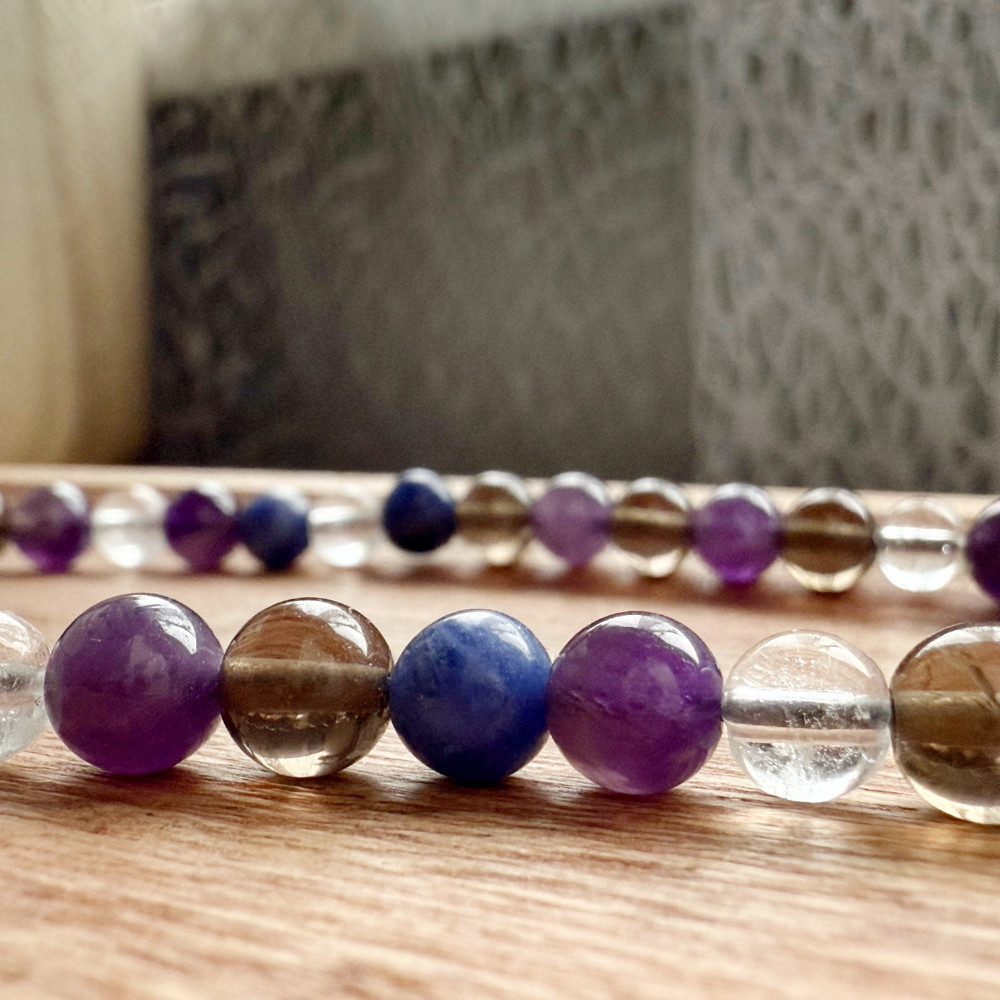 ametiszt, füstkvarc, napkő, fekete turmalin